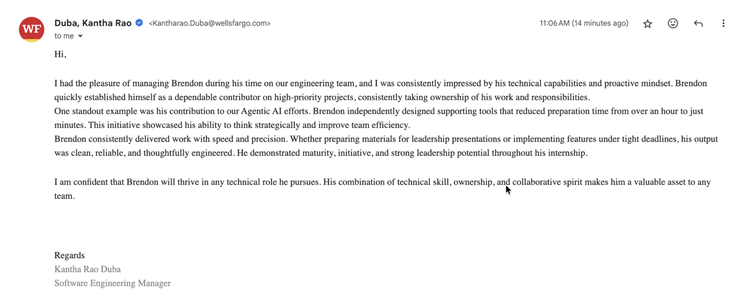 My experience spans from developing AI-powered reconciliation tools at Wells Fargo to building comprehensive educational platforms. I enjoy working at the intersection AI and user-centric design.